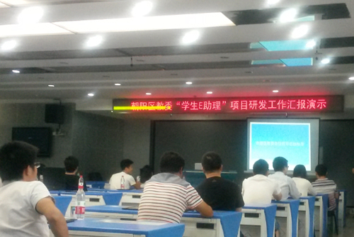 9月18日,在北京朝陽教委 “學(xué)生E助理”項(xiàng)目研發(fā)工作匯報(bào)演示廳中,由無線寬帶網(wǎng)絡(luò)事業(yè)部為其架設(shè)、部署了無線網(wǎng)絡(luò),保證了匯報(bào)演示過程中后臺服務(wù)器與終端的穩(wěn)定