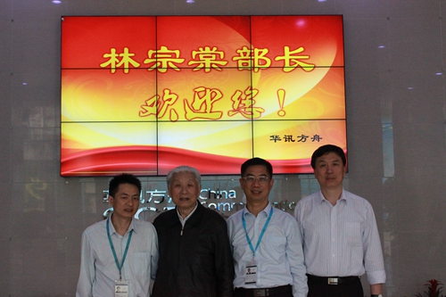 4月28日,中國名牌戰略推進委員會主任、原國家航空航天工業部部長林宗棠,加拿大華人學者林云教授蒞臨華訊參觀指導。 集團副總裁丁慶、總裁辦主任何忠洲,陪同林宗棠部