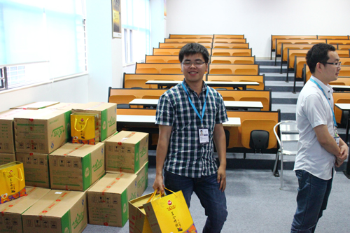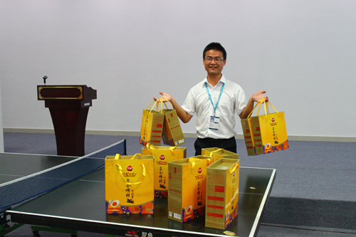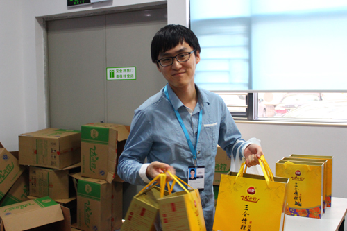 菖蒲高懸飲雄黃,竹葉紅豆粽子香,端午臨近,濃濃的節日氣氛彌漫華訊方舟,66日下午,由公司行政部精心準備的一箱箱“三全龍舟粽”抵達公司階梯會議廳,各部們派代表領取集團送給員工們的節日禮物,讓他們感受到家的溫暖,一箱箱龍舟粽,一張張開懷笑臉,情更濃。
