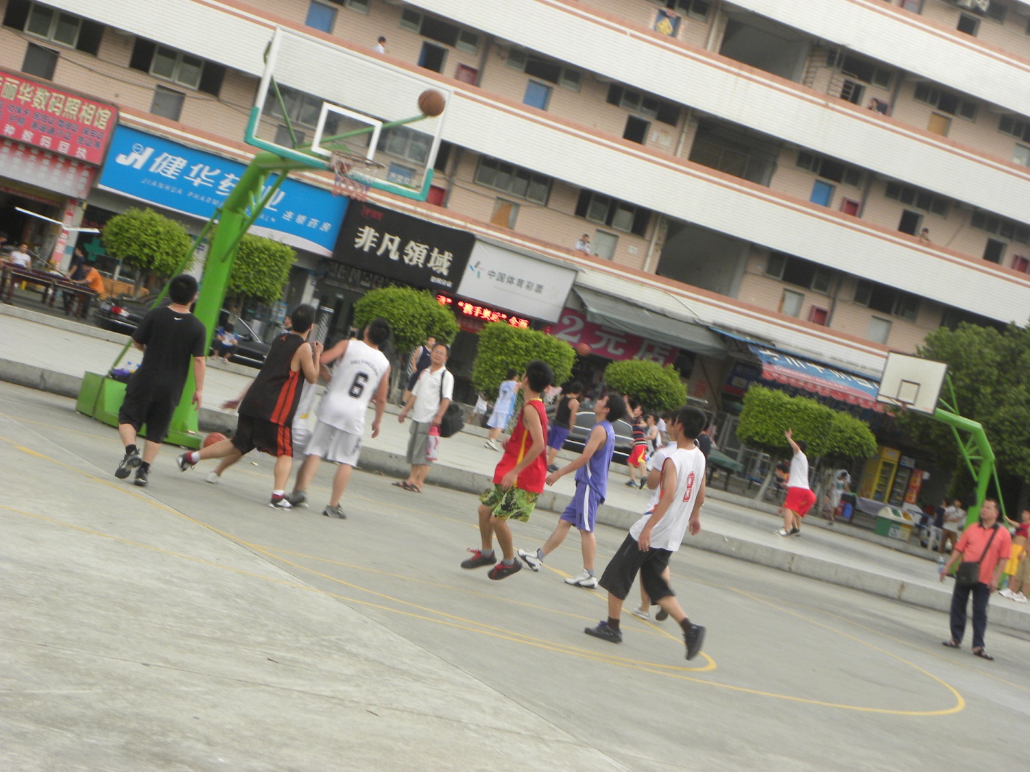 在公司人事部的組織下,光明分公司和總部要開始一場精彩的籃球比賽。時間定在9月6號晚上的7點。下午5時,驅車向總部出發啦!7點的時候,比賽正式開始.大家相互團結,默契傳球,開局